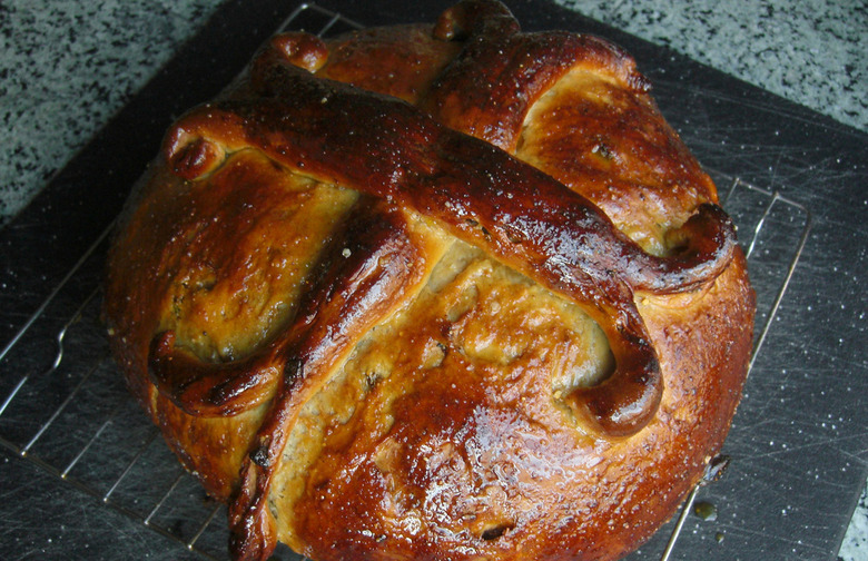 The winter hog slaughter is a time-honored tradition all over Greece, making pork the preferred meat for Christmas dinner. Greek Orthodox religious tradition calls for a fasting period to start almost 40 days before Christmas. While the Christmas fast is not as strict as the Easter one, it is still practiced throughout most of Greece today. Dairy products are avoided on Mondays, Wednesdays, and Fridays, and meat is prohibited the entire time. Vegetables and legumes make up most of the meals during the fast, so it's not hard to see why Christmas dinner is so appealing. Along with fresh Christmas pork, served roasted or grilled, the Christmas table will also surely include Christopsomo, or "Christ's bread," a Greek specialty baked this time of year. This is a round loaf decorated with dough crosses. Each island or region has its own variation.
