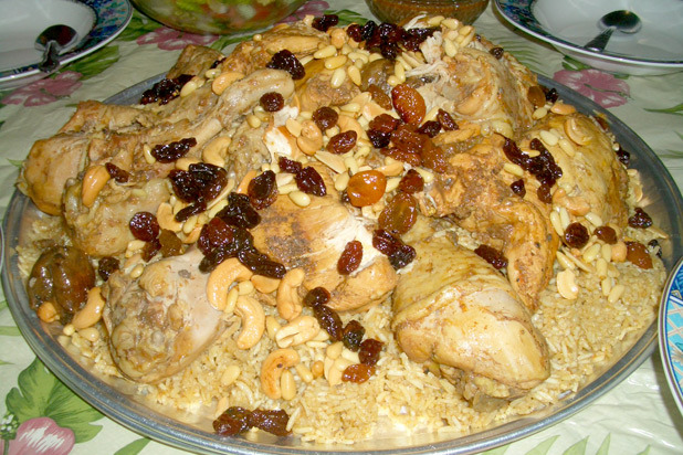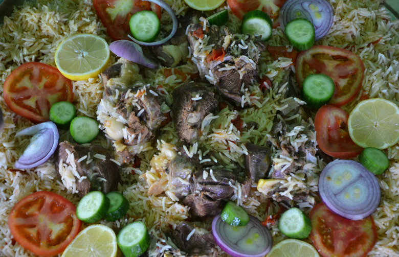 At its most basic, Saudi Arabian kabsa is a spiced rice dish with meat and vegetables. The list of spices is exhaustive (saffron, cinnamon, nutmeg, cloves), as is the list of various meats and vegetables used (chicken, lamb, goat, beef, fish). Al Taboon, in Riyadh, specializes in kabsa and is a local favorite.