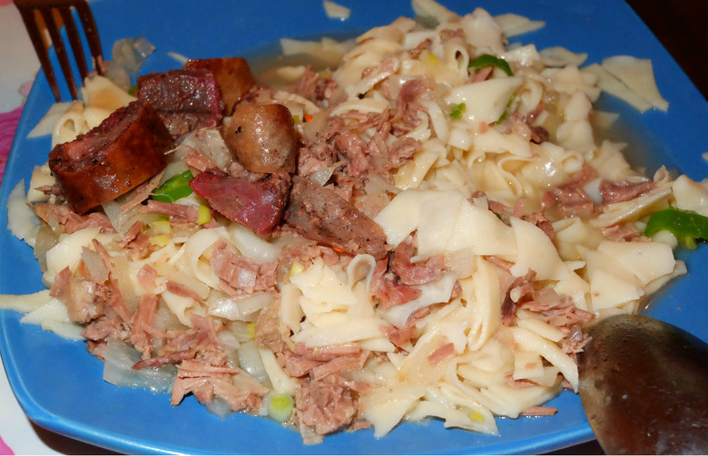 Traditionally a food eaten by nomadic tribes in Kazakhstan and Kyrgyzstan, beshbarmak means "five fingers" because it's eaten by hand. It consists of boiled meats (often horse meat) served with noodles and can be found, arguably in its most authentic form, at street stalls, as well as Kazak restaurants like Zheti Qazyna in Almaty.