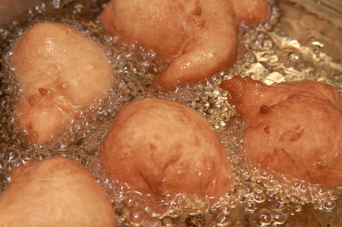 In the Netherlands, ball-shaped and deep-fried oliebollen (literally translated as "oil balls"), are typically filled with raisins, and enjoyed around festivities like New Year's Eve.