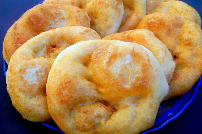 The ring shape of these Moroccan treats might be similar to the classic American doughnut, but instead of being smooth around the edges, sfenj are quite rough-hewn. The yeast dough used for sfenj is sticky and unsweetened, and the doughnuts are often sold by street vendors. Sfenj can be enjoyed plain or dusted with sugar, for breakfast or with a cup of tea.
