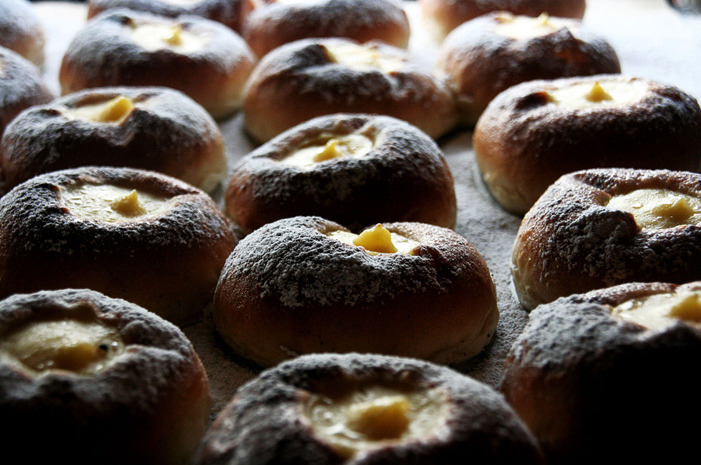 Finnish munkki are similar to classic American yeast doughnuts, but are much heavier and doughier. The batter calls for butter, eggs, milk, flour, and salt. The doughnuts are either ring-shaped or solid rounds and often filled with strawberry jelly. If you ask for a "possu" (especially common at truck-stop cafés and other local bakeries), you will get a quite flat, almost square version of this same jelly-filled doughnut (possu means "piggy," supposedly a reference to their shape).