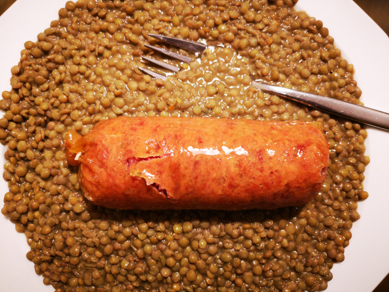 On New Year's Day, Italians feast on the traditional dish of cotechino e lenticchie, which is savory pork sausage containing "lo zampone," or the hoof of the pig, and paired with lentils. The hoof is a symbol of abundance, and lentils are believed to bring good luck and prosperity in the new year.
