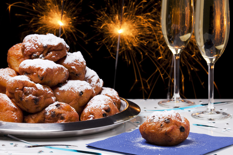 People in the Netherlands ring in the new year — what they call Oud en Nieuw, meaning "Old and New" — with sweets. Ring-shaped foods are thought to bring prosperity and luck in the new year in many countries around the world, and the Netherlands is no exception to this rule. Eating oliebollen, or fried doughnut-like pastries that are filled with apples, currants, and raisins and sprinkled with powdered sugar, is said to be lucky on this day. They are served along with apple beignets, apple turnovers, and Champagne.