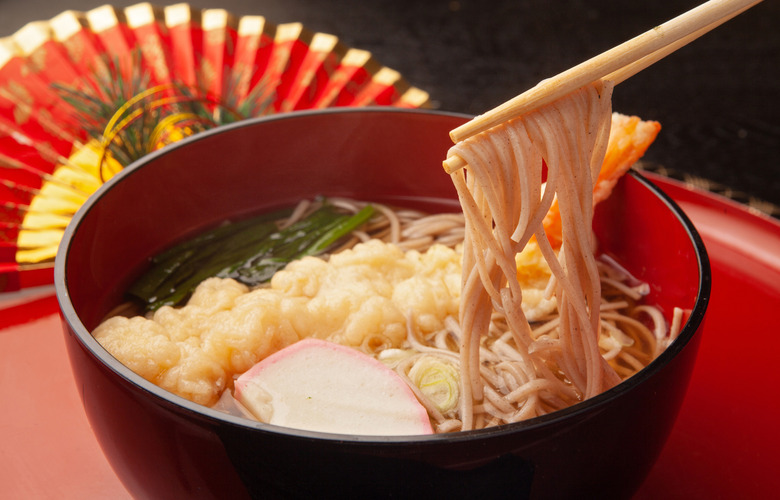 Just before the clock strikes midnight, people in Japan begin the new year with a bowl of buckwheat noodles called toshikoshi soba, which are known as "year-crossing noodles." Straw ropes are hung on the entrances to homes before the new year to keep away evil spirits, and for the same purpose, some go to the temples and ring the bell 108 times. People who believe in the Shinto religion arrange green plants, which symbolize new life, and bamboo, which signifies honesty, around their homes.