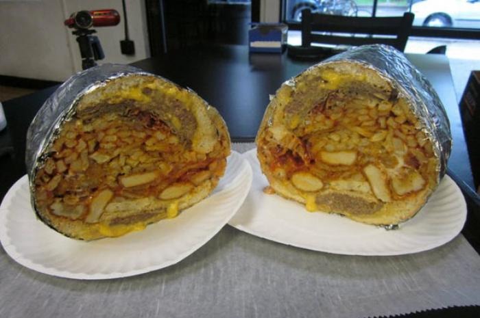 This sandwich could only ever have been assembled in a college town. The "Big Fat Ugly Challenge" involves 20 ingredients, including four cheeseburgers, gyro meat, a pork roll, onion rings, mozzarella sticks, jalapeño poppers, chicken fingers, and chicken nuggets. If that wasn't enough, for the sandwich to be free, you need to eat it in under 15 minutes. That's right: You have a quarter of an hour to devour what could well be the last sandwich you'll ever eat.