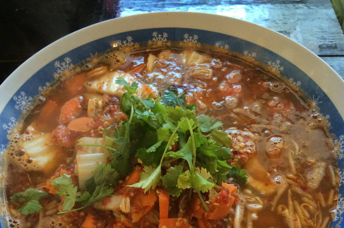 The Inferno Soup Challenge at Nitally's ThaiMex Cuisine combines two food challenge components in one: not only is the sheer quantity of food overwhelming, but it is also incredibly spicy. The soup is served in a 48-ounce bowl and contains 12 kinds of peppers from around the world. The spiciest chile used is the bhut jolokia, also known as the ghost pepper. Many have attempted the scorching soup, but few have succeeded in consuming the massive bowl in the time limit of 30 minutes.