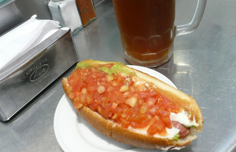 We must give a shout-out to Chile, whose hot dogs are not on this list because their standard fixings — tomatoes, avocados, mayonnaise, and sauerkraut — are not different enough from what we might enjoy in New York, Los Angeles, or any other city that is home to one of America's best hot dogs. Though we must admit that Chile's completo a lo pobre, a hot dog filled with fried onion and French fries and topped with a fried egg, is pretty outrageous. We almost can't believe it's not American.