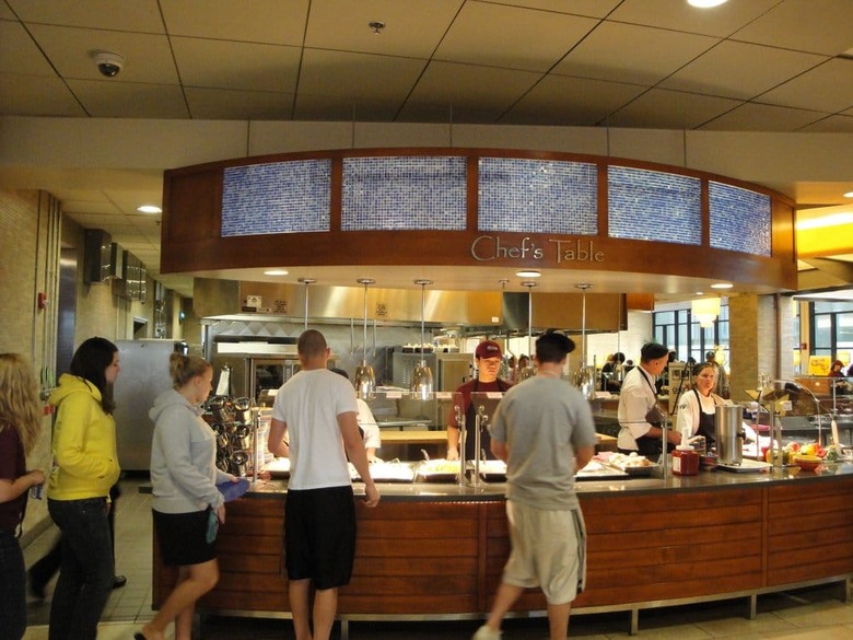 Thanks to its dining services, Colorado State University has shot up quite far on our list after becoming the first STARS Platinum Rated University for sustainability, and it continues to strive to become a near zero-waste university. CSU also puts an enormous focus on providing fresh ingredients for its students, which is why they make menu items from scratch every day and often right in front of students — for instance, at the sizzling salad station, omelette and pancake bars, sushi bar, Mongolian grill and stir fry, barbecue smoker station, and bakery (which includes gluten-free items baked in a separate facility). The EatWell program (which also labels foods for dietary and allergy purposes) and on-campus dietitian emphasize the importance of healthy choices, and a nutrition kiosk is located at every dining facility. Meal plans for the five all-you-care-to-eat locations also include "RamCash" that can be used at more than 17 restaurants, coffee shops, and even the RamSkeller Pub, which offers live entertainment, pub food, and plenty of beer for students 21 and over. In addition to the sustainability efforts showcased by numerous LEED-certified buildings, CSU also donates leftover food, performs composting on campus, holds several zero-waste food events, and recently received a sustainability award from the National Association of College and University Food Services.