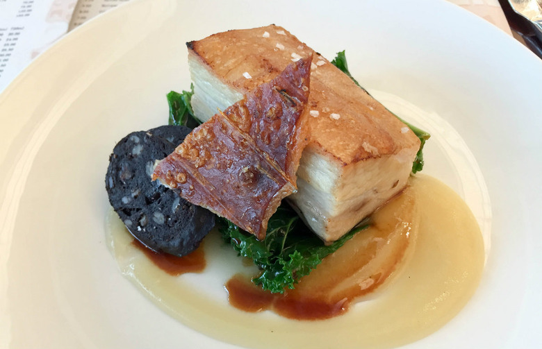 Plane Food embodies traditional British cuisine, with menu options such as dry-aged British beef, stout-braised shoulder of beef, English pea and broad bean risotto, toffee pudding, and a cheese plates.