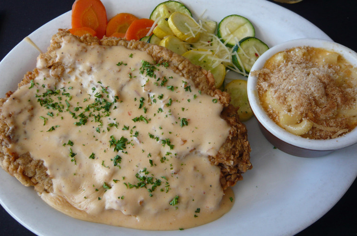 Wyoming considers chicken-fried steak the state's favorite/signature food according to a Cooking Channel survey. It's just a boneless rib-eye or some other cut of steak breaded as if it were fried chicken, then fried up crisp and served beneath a hearty helping of cream gravy.