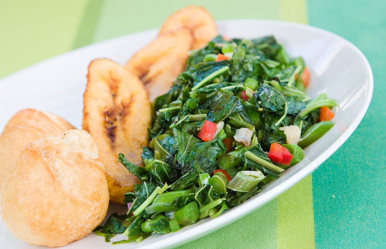 Callaloo is a leafy green stew of amaranth, taro, water spinach, or other similar leaves — vegetables that actually becomes more nutritious when cooked. The stew has four times as much calcium as broccoli, and is rich in iron, antioxidants, and energy-boosting carbohydrates that exist as a result of the water in the dish turning some of the fiber in the leaves to starch.