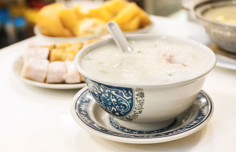 Congee is a rice porridge that can be eaten with fruits or savory items like chicken. Eaten plain, it provides a quick dose of simple carbohydrates, but as a result of the structure of rice grains softening in hot water for a long time, the starch is more evenly distributed and thus easier to digest. In other words, it won't sit in your stomach and land you in a food coma. Congee is eaten in various Asian countries — not just China — and since it is so versatile, each country has different flavors and additions for the dish. Why not add some of the other foods on this list to congee and see what happens?