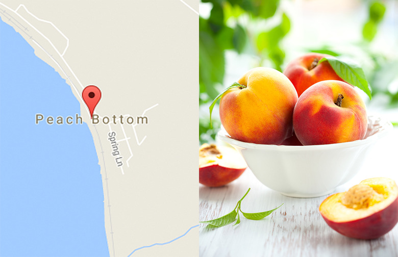 Peach Bottom lies on the Mason-Dixon line, close to Pennsylvania's southern border with Maryland, and on the eastern banks of the Susquehanna River. The original town was built across the river, until the Conowingo Dam was built, which ended up submerging the original town. The Peach Bottom Nuclear Generating Station is near the current town's location. Locals speculate the name "Peach Bottom" originates from the American redwood (or "Judas") trees whose blossoms blanket the hillsides in the spring time, resembling peach orchards.