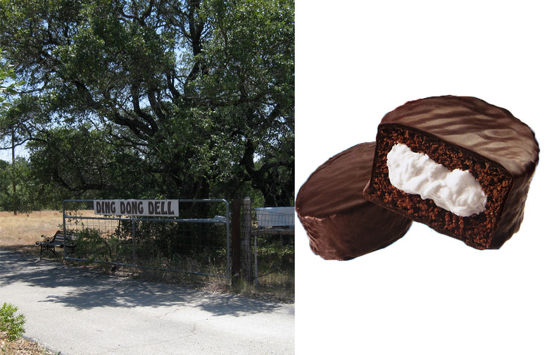 Ding Dong is located on the Lampass River in central Texas, and was founded in the 1930s by brothers Burt and Zulis Bell, who ran a country store. An artist whom they had hired to paint a sign for their store decided to take creative license with his task. He painted two bells, representing Burt and Zulis, and beneath them he painted the words "Ding" and "Dong." Residents seemed to agree.