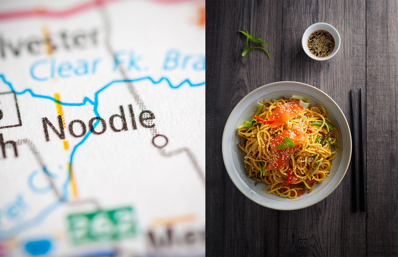 Noodle is named for nearby Noodle Creek. Noodle is the local term for "nothing," and the name signifies a dry creek bed. Settlers began arriving in the 1880s, coming for the cheap land, which could be bought for $5 an acre. They definitely used their noodles on that deal.