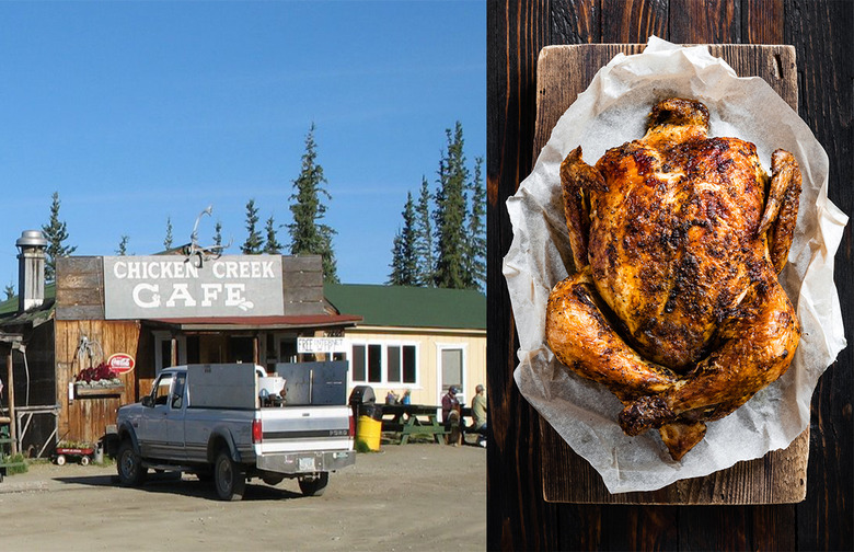 Alaska's state bird is the ptarmigan, which some say bears resemblance to the chicken. Miners in search of gold in the late 1800s kept themselves alive on this tasty bird, which was abundant in the area. In 1902, the time came to incorporate the town and decide on a name. First up was "Ptarmigan" (complete with quotation marks), but not wanting to be ridiculed, locals decided upon the more humble Ptarmigan. However, no one could agree upon the spelling, so Chicken it was.