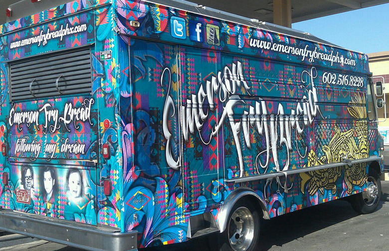 The colorful Emerson Fry Bread truck might very well be the only truck in the country that specializes in Native American cuisine — one of the most underrated cuisines of the world — with a Mexican twist. Customers pick a protein and a wrap style, such as "Jazzy" (Indian-style with beans, carne asada, cheese, and pico de gallo), "Mi Bandera Linda" (with handmade red and green chile sauces), or "Bolli" (served in a taco bowl), and wash it all down with a fan-favorite 32-ounce prickly-pear-based juice. Emerson is a testament to the creativity needed to run a successful food truck.