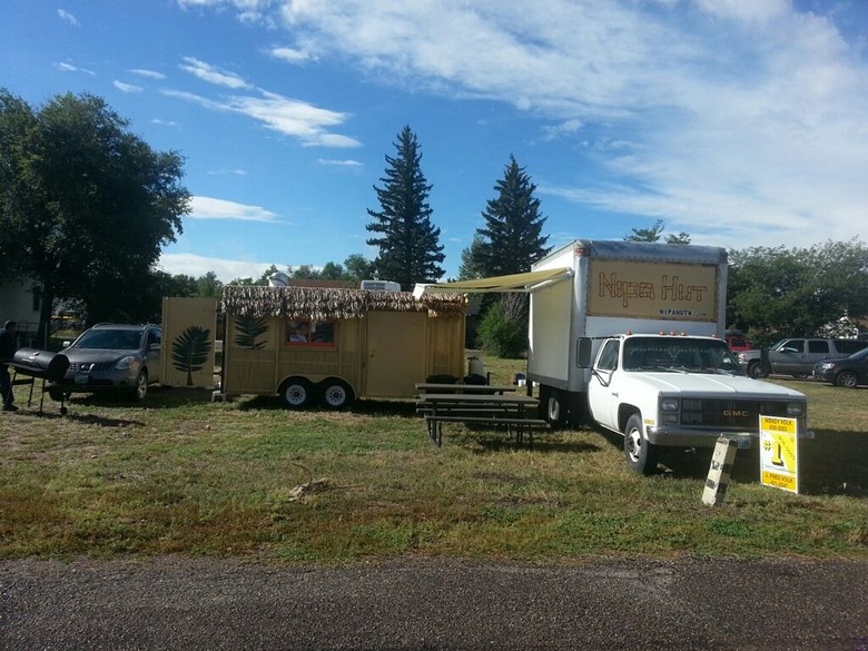 A nipa hut (also known as a "bahay kubo") is a little house found on the islands of the Philippines, so of course the Nipa Hut food truck looks like a little bamboo shack and serves Filipino food. Featured dishes include lumpia (beef or vegetarian with celery, carrots, garlic, onions, and cilantro), chicken or pork adobo (slow-cooked in sweet soy sauce, garlic, onions, ginger, and vinegar), empanadas, and sides of fried rice and pancit noodles.