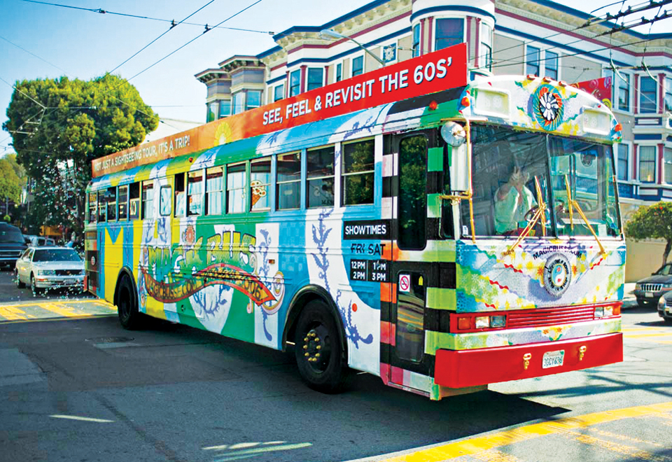 Take a trip on Antenna Theater's Magic Bus, a colorfully painted hippie-mobile reminiscent of the Merry Pranksters' infamous Furthur Bus. It's outfitted with a full sound system, video projectors, psychedelic light shows, and a trippy "goddess" guide adding commentary to a production that features voices from the '60s, including Allen Ginsberg, Jerry Garcia, and Alan Watts. Lowered screens turn the bus into a moving movie theater that shows documentary footage of events such as the Human Be-In in Golden Gate Park. The Magic Bus boards at Union Square and visits Chinatown, North Beach, Haight-Ashbury, and the Conservancy of Flowers in Golden Gate Park.