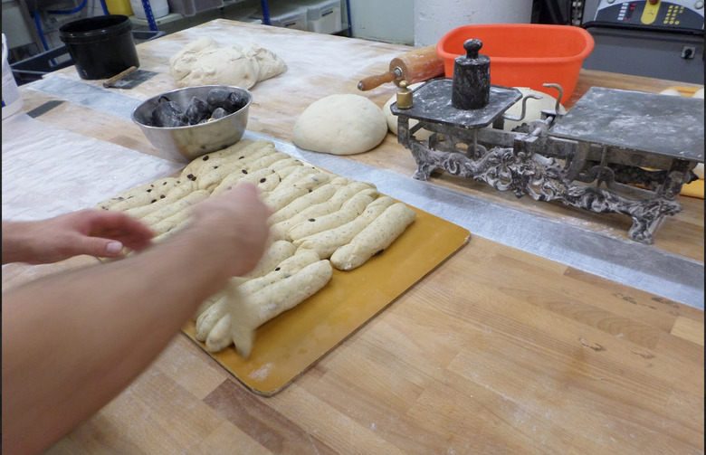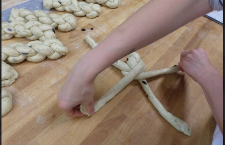 Head baker Sergei Muratov patiently demonstrated the process of braiding for me, and I tried to mimic it.