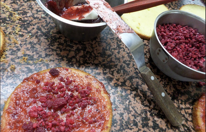 At Café Ekberg, raspberry jam and frozen Finnish raspberries are spread on top of each layer, except the top one.