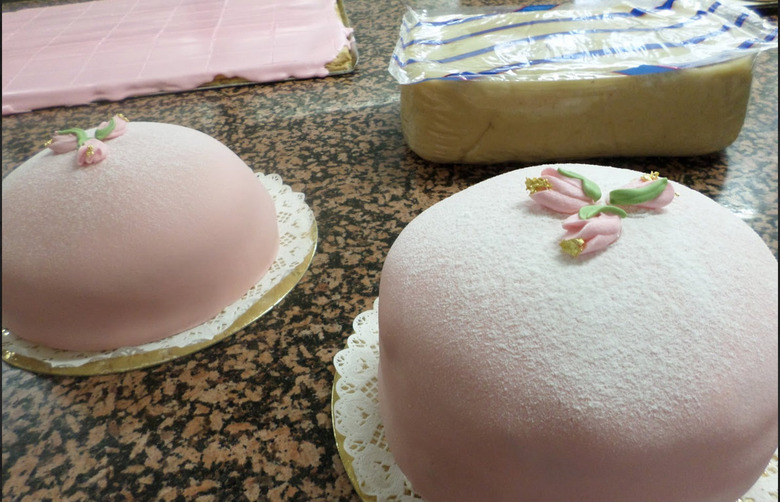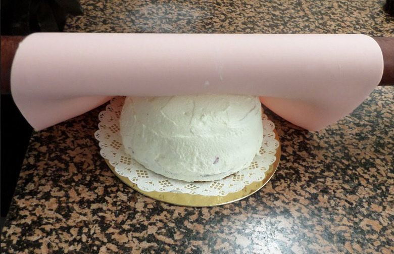 The hardest part in the cake-building process was to get the flattened marzipan nicely and evenly draped over the cake.