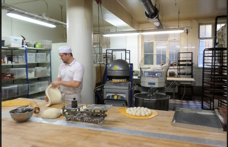 The baking room in the back of Café Ekberg. All of the breads and buns sold at the cafeteria and bakery are made here.
