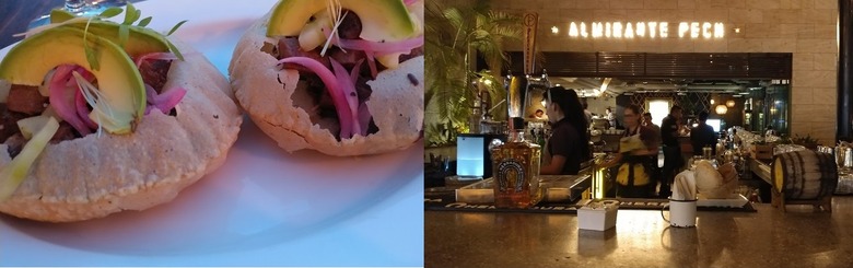 Just a few blocks' walk away on La Quinta Avenida, authentic eateries like Almirante Pech serve up barbacoa panucho, a traditional street food made with fried corn masa, barbecue beef, beans, pickled cucumbers, and red onion, as well as other main dishes like pan-roasted octopus kastakan and pork montadito. Dining alfresco here puts you front and center for watching street performers, artisans selling their crafts, and countless families, both local and tourist, strolling by enjoying a night on the town.