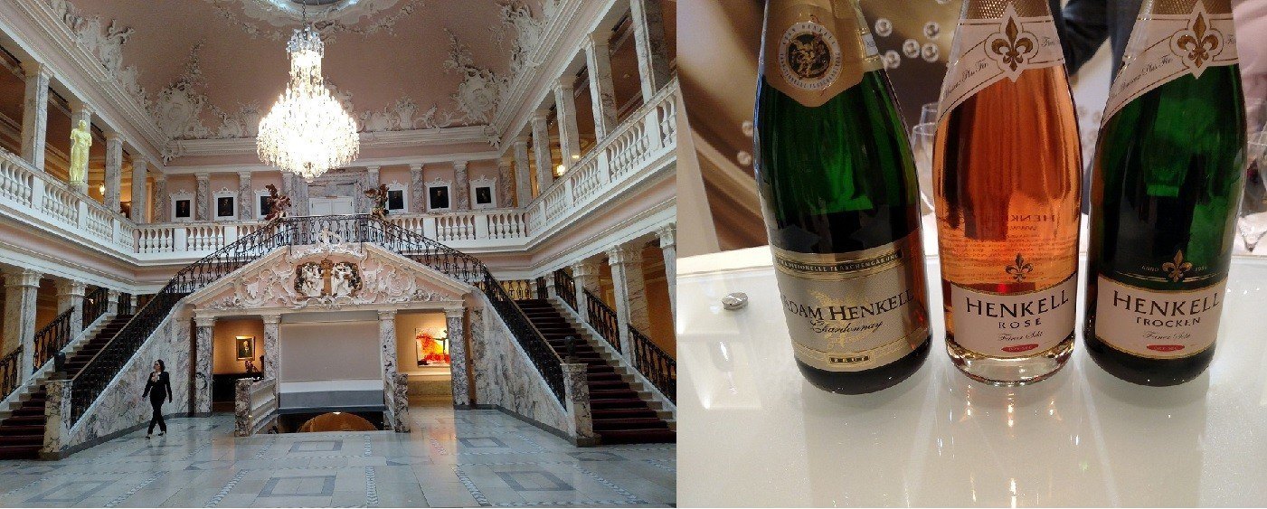 Henkell — The headquarters of the world renowned sparkling wine producer Henkell is just outside downtown Wiesbaden. Open for tours, it boasts a grand marble entrance hall with a rotating collection of paintings on the walls. Further exploration reveals Henkell's extensive production and bottling operation and vaunted cellars several floors below. Founded by Adam Henkell in 1832, the producer still successfully combines the artful composition of French cuvée with the precision and consistency of German craftsmanship. Henkell is now exported to more than 100 countries.