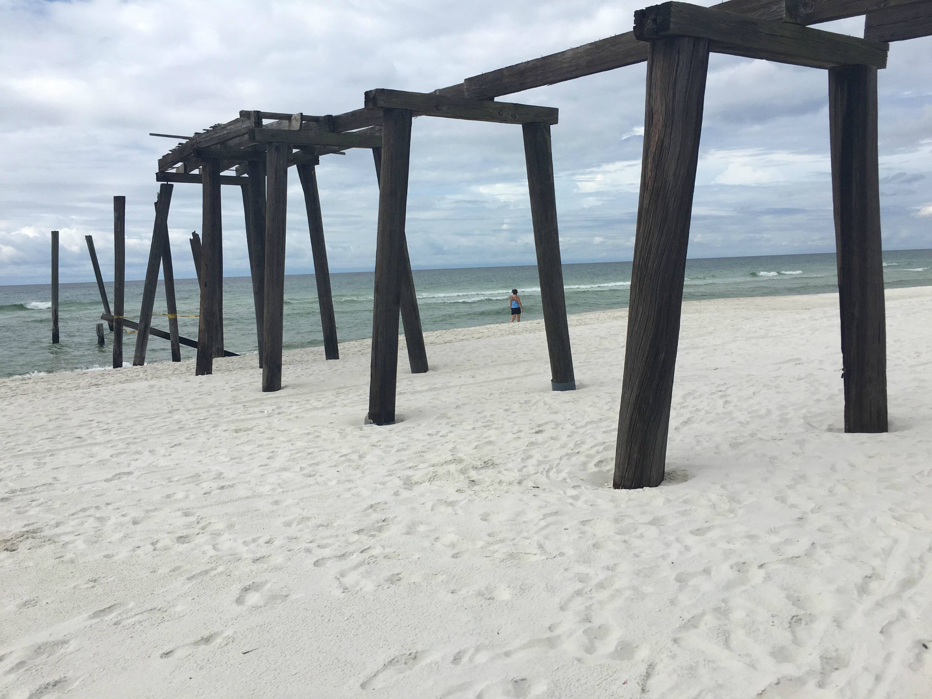 Camp Helen State Park, bordered by the Gulf of Mexico on three sides, offers history, hiking trails, and, most memorably, a "hidden pier" at the end of a half-mile walk to the beach. The quiet, secluded beach and the towering remains of the pier make for a serene experience.