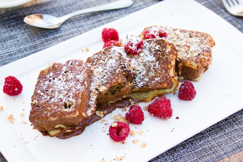 Entrada's banana bread French toast, dressed up with Nutella, hazelnuts, and raspberries, is like dessert for breakfast. I dare you to order it and not finish it — an impossible task, as you'll practically be licking the crumbs off your plate!