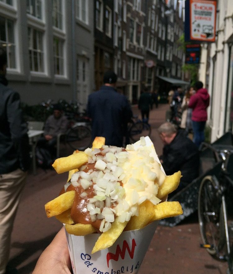 French fries are pretty innocuous, right? Unless you're in Amsterdam and you dislike mayo and/or ketchup, which may be squirted all over your fries if you do not request otherwise. Just make sure to speak up before your food is prepared, and you should be fine.
