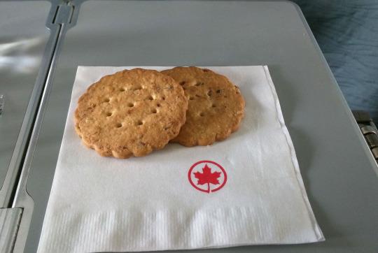 Delta's Biscoff cookie might be more famous, but it'd be interesting to have a taste-off between those and Air Canada's secret weapon: Peek Freans Cranberry Citrus Oat Crunch biscuits. Where Delta's cookies are thick and stocky, Air Canada's are thin and round with pretty scalloped edges. The flavor is more sophisticated too: a fragrant orange brightened by tart and chewy cranberries. Unfortunately, as I found out on the second leg of a recent pair of flights, these beauties are not available when your trip is longer than about two hours. On those flights, you'll have to buy something from the Air Canada Café — a menu that sadly does not include Peek Freans.