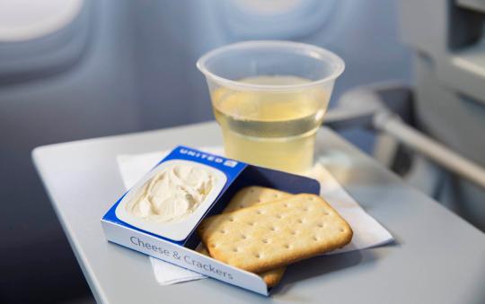 Flying ain't as classy as it was in the Pan Am days, but United is doing its part to bring back at least a little of that elegance. On long-haul international flights, meal service begins with complimentary cheese and crackers — sometimes cheddar, sometimes creamy Kiri cheese. Either way, it's a simple gesture that might remind you of a more refined time. Just don't get too caught up and accidentally call your flight attendant Jeeves when you order a glass of wine to go with it.