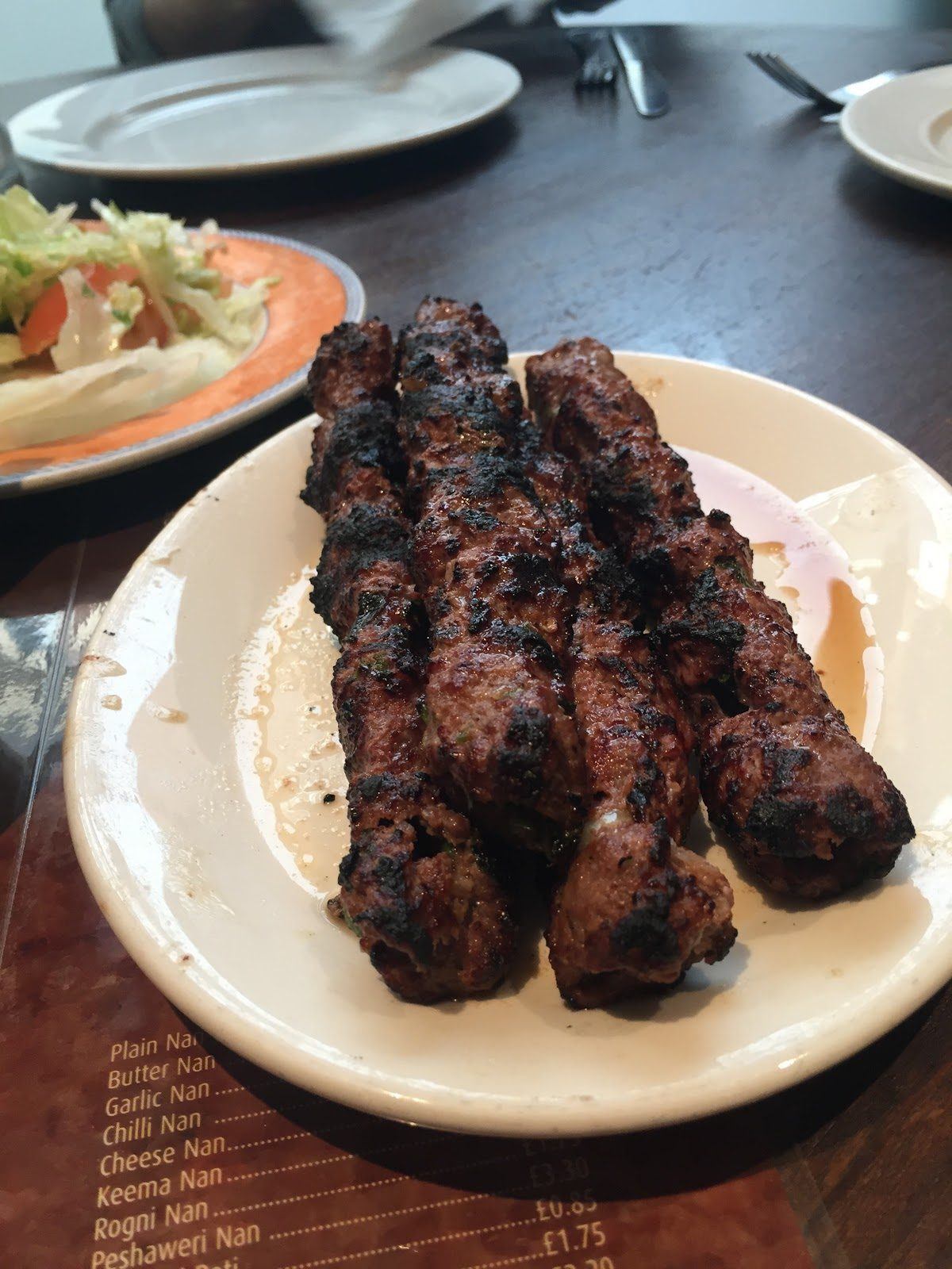 I am outside Whitechapel Gallery in the part of cockney London where you can see the skyscrapers of The City (the name of the financial district) and the old warehouses that predate WWII. The heavy bombing in the war served as a kind of discount urban renewal. I am waiting on Anwar and the rest of a group going on an Indian food tour that I signed up for on Eventbrite. The folks inside the famous Whitechapel Gallery (a world leader in what is wrong with Modern Art) have never heard of the tour because, I find out in due course, their gallery is just a landmark frequently used as a meeting point. It is an especially good choice for this tour as it is at one end of Brick Lane, a well-known center for cuisine from the pre-partition Indian subcontinent. Most of the restaurants are Bangladeshi-owned nowadays. First our group walks to Commercial Road and Lahore Kebab House for some genuine Pakistani food (it modestly describes itself as the most famous halal restaurant in the world). It is BYOB so I buy a bottle of King Cobra beer at the convenience store right next door. We work our way through seekh kebab (minced meat with spices, grilled on a skewer), paneer tikka (chunks of Indian cheese marinated in spices and grilled in a tandoor/clay oven), chicken tikka (small pieces of boneless chicken marinated in spices and baked using skewers in a clay oven) and garlic naan. Afterward, we tour the (impossibly hot) kitchen, watching cooks stick their hands directly in the tandoor to cook the naan bread. Not just this, I am also amazed at how accurately they time the cooking. No clock needed.