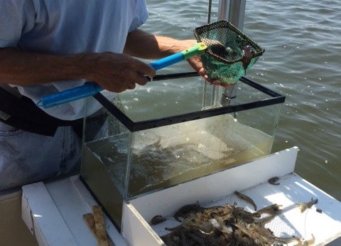Next, with seagulls flocking overhead, he throws out shrimp nets (weighted doors keep them open) from the back of the boat. A few minutes of trawling later, he hauls in the net and empties it into a seawater tank. Jellyfish, puffers (they feel like the Pillsbury Doughboy), squid, eels, and ribbonfish drop from the nets along with several varieties of shrimp.
