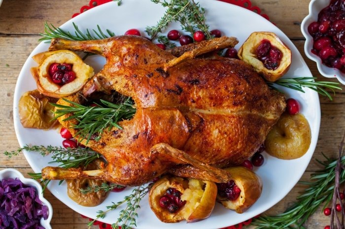 Germans enjoy a simple Christmas Eve dinner, followed by a much larger, multi-course dinner on Christmas Day. There is goose, duck, rabbit, and Krustenbraten (pork roast with a crispy rind), accompanied by such things as potato dumplings and sausage stuffing. The traditional Christmas dessert is a platter of the cookies called Weihnachtsplätzchen.