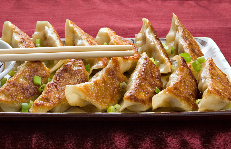 This Japanese dumpling is similar to a Chinese pot sticker, but usually encased in thinner dough. The filling is typically ground pork and cabbage, flavored with soy sauce, and the gyoza can be pan-fried, boiled, or deep-fried