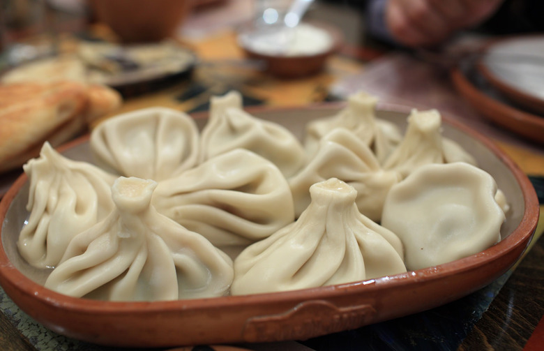 A traditional Georgian dish, these dumplings are made by twisting the ends of a section of dough to seal it full of spices and meat, usually a mixture of beef and pork. The recipe varies greatly by region; mountainous areas often make khinkali with lamb, and some city versions incorporate chopped parsley.