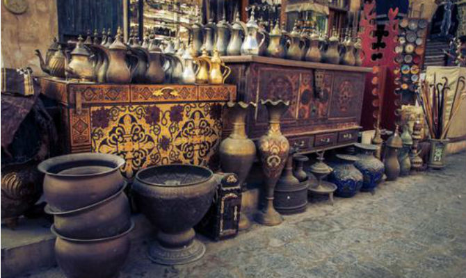 The Souq Waqif will be your one-stop souvenir shop: jewelry and bangles, copper and gold, minicarpets, ornate tea sets, and mosaic lanterns. It's also an important town square and meeting place, offering street food of all kinds. Before heading back to the airport, enjoy one of the many cafes at the Souq, or grab a street snack like grilled meat or corn.