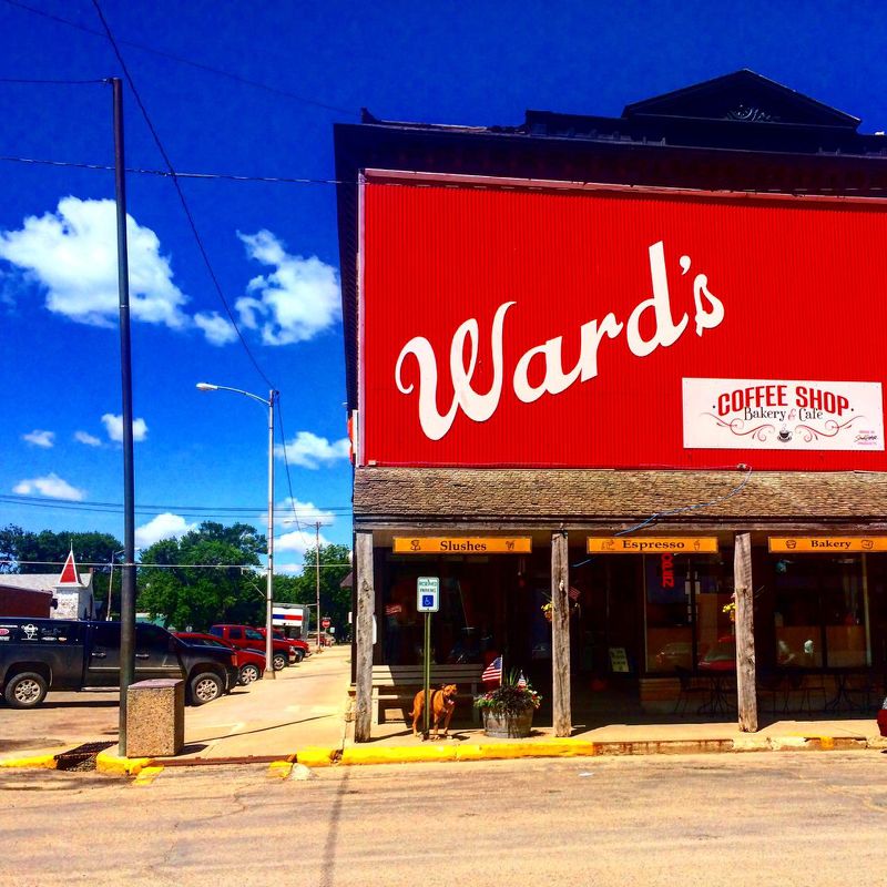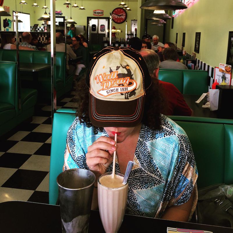 In De Smet, South Dakota we happened upon Wards, a coffee and curio shop that sold items related to the author Laura Ingalls Wilder, hand-sewn bonnets, quilt patterns and log cabin model kits. We bought a root beer float for $2 and a post card of the Little House in the Big Woods.