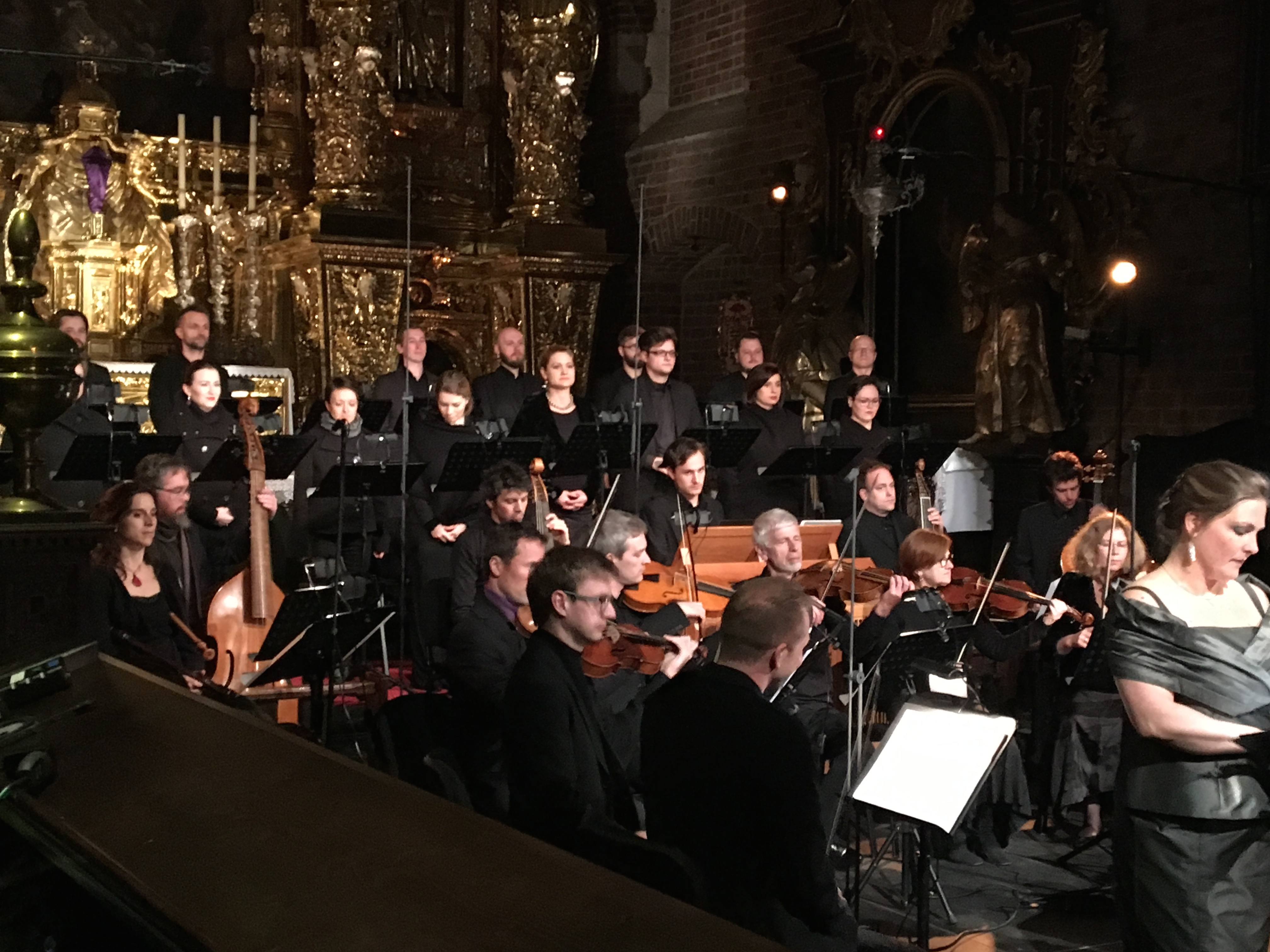 The Corpus Christi church, new to this 14th edition of the Misteria Paschalia festival, features a recently re-gilded baroque altar even more dazzling and opulent than the one at Saint Katherine's, making the shadows all the more mysterious and poignant with, well, Misteria Paschalia, which means "Easter mystery." The "Messe des Morts" by French composer Jean Gilles, performed by the Capriccio Stravagante and the Capella Cracoviensis directed by Skip Sempé, was the early 8 o'clock performance, with Sébastien de Brossard's "Leçons de Ténèbres du Mercredi Saint" with Victoire Bunel, Le Quadrige, and the Ensemble Athénaïs trio at 11.