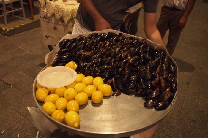 Late at night, when the revelers hit the town, young boys hocking Midye Dolmasi (stuffed mussels) from trays jockey for customers at the entrance to the historic fish market just off Istiklal. They can usually be found throughout Beylogu. The going price for one stuffed mussel is 1 TL.