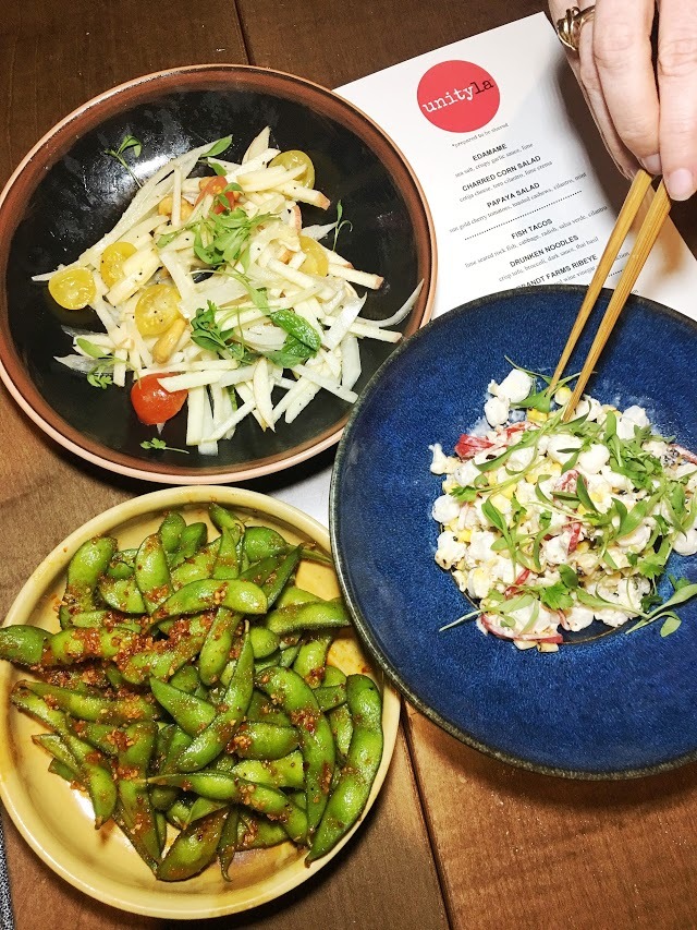 With this massive renovation came the creation of Unity LA restaurant, bar, and market. Chef Charles Fusco and his crew spent many late nights in the kitchen creating an eclectic yet cultural menu reflective of Los Angeles. It's like a melting pot of LA's diverse food culture with heavy Asian and Mexican influences all under one roof.