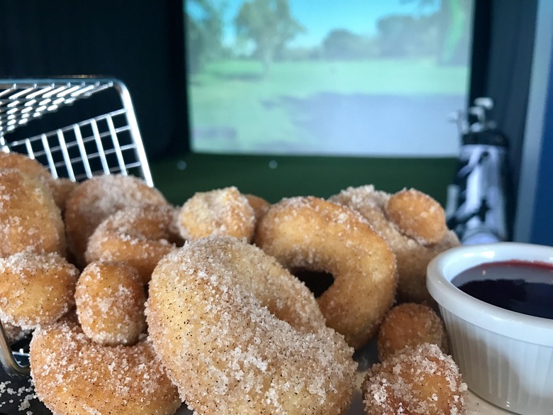 Finally, before checking out, visit Tap In Pub & Carvery for some casual sports-centric fun and American fried and grilled comfort fare. While taking turns playing a variety of games on the high-definition golf simulators (there are even games and clubs designed for kids), chow on fully loaded nachos and potato skins; a giant Milwaukee German pretzel; fried Ellsworth Dairy cheese curds; sliders; sandwiches; burgers; tacos; or, my favorite, fried donuts with salted caramel, strawberry, and chocolate sauces.