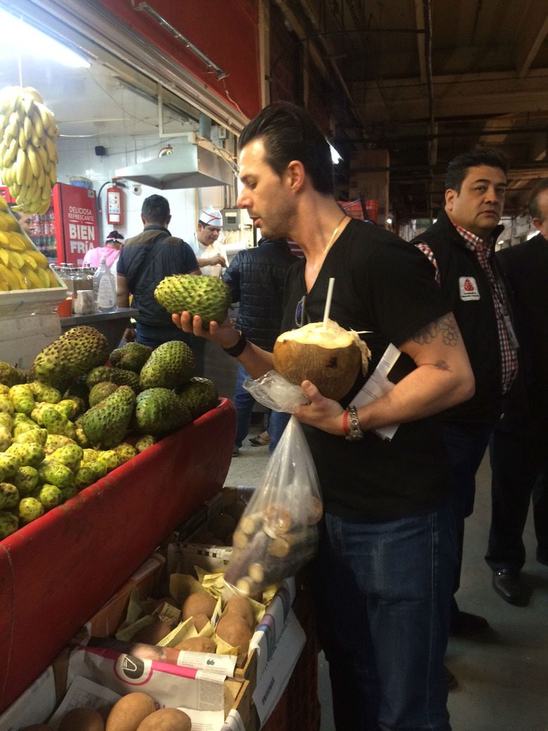 While listening to his friends' recommendations, Iuzzini wasted no time in examining what he saw and wanted to taste. He tried fruits unique in look and flavor: the citrusy granada china, the papaya-looking mamey sapote, and the dark but sweet zapote negro. He took a whiff of vanilla beans and browsed through containers of moles from different regions. With every stop, Iuzzini pulled out his notebook, jotting down notes and first impressions. And, of course, he made some purchases, like piloncillo, a brown cane sugar molded and sold in a cone shape.