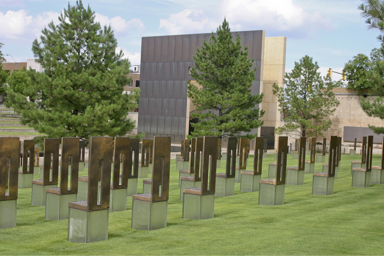 The Oklahoma City National Memorial pays tribute to all who were affected by the 1995 Oklahoma City bombing, which killed 168 people, including 19 children. The outdoor memorial is open 24 hours a day, 365 days a year. Its numerous symbolic features include a reflecting pool, a survivors' wall and 168 empty chairs, each marked with a name of a person lost on that day.