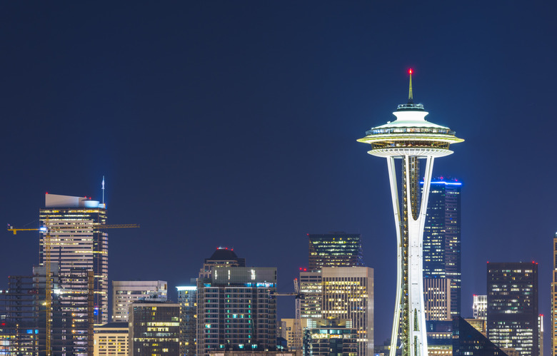 Seattle's scenic Space Needle, built for the 1962 World's Fair, soars 605 feet above the Emerald City. Its stylish, futuristic shape can be photographed beautifully from many neighborhoods and parks in the city. Visitors can ride a glass elevator to the top and dine at the Needle's revolving restaurant or just admire the 360-degree view of the mountains, city skyline and Puget Sound.