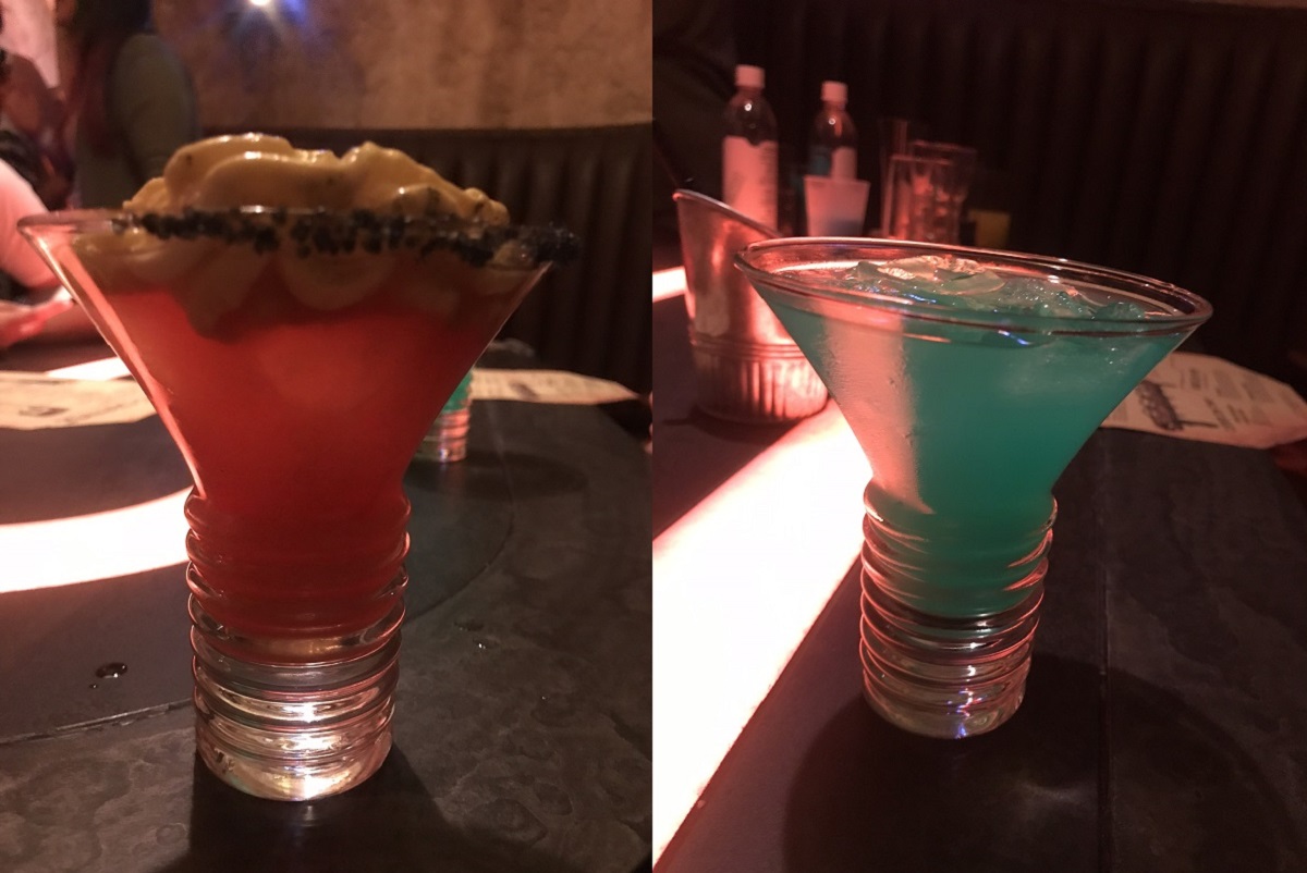 As for the cocktails, we tried the Outer Rim and the Jedi Mind Trick. The former seemed to be among the most popular menu offerings, and the tequila-based cocktail with acai liqueur, lime juice and a black salt and sugar rim was well-balanced. The "exotic fruit puree" (which really just tasted like a mango whipped cream) rounded out the Outer Rim well and was quite refreshing. The Jedi Mind Trick was lightsaber bright blue, making for a fun presentation despite a lack of garnish. While some cocktails made with blue curacao can be sickeningly sweet, we also found this drink to be nicely balanced, thanks to the tart flavors of the grapefruit and rose vodka as well as a few dashes of grapefruit bitters.